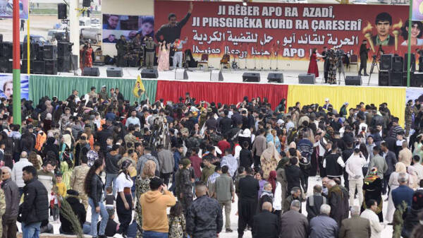 Bi dirûşmeya “Ji Rêber Apo re azadî, ji pirsgirêka Kurdî re çareserî” bi hezaran kes li Bendava Rojava Newroza 2024’an bi coşek germ pîroz dike.