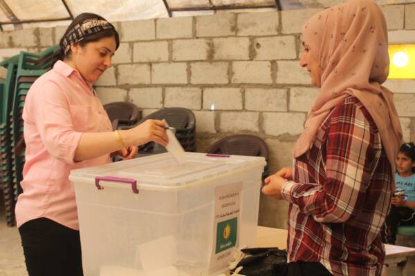 Pêşhilbijatina ku di seat 9:00’an de dest pê kir, seat 15:00’an dê bi dawî bibe. Endamên Kongra Star, Meclisa Malbatê Şehîdan, PYD’ê û Hêza Parastina Civakî berê xwe dan navendên hilbijartinan û dengê xwe didin.