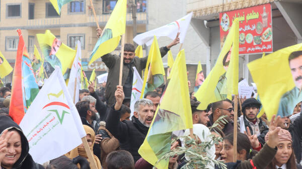 Meş bi slogana "Bijî Berxwedana Efrînê "û "Bê Serok Jiyan Nabe" bidawî bû.