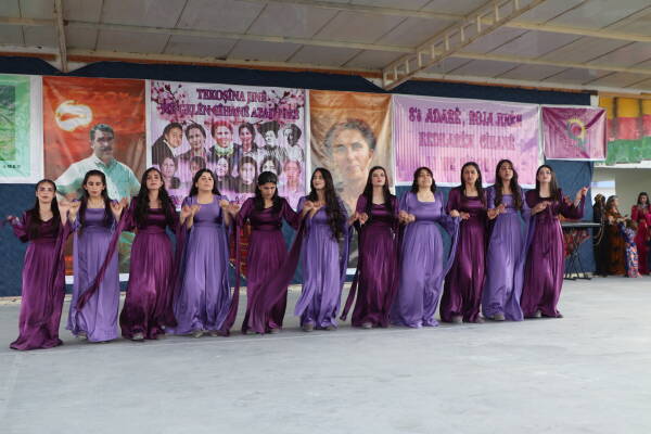 Mexmûr - 8’ê Adarê Roja Jinên Kedkar a Cîhanê li wargeha penaberan a Mexmûrê bi coş û kelecanek mezin hat pîrozkirin. Îro tevayî jinên wargeha Mexmûrê cihê şahiya pîrozbahiyê bi hemu rengîniya xwe xemilandin û 8’ê Adarê pêşwazî kirin. Şahî bi tevlîbûna hemu xwandekarên dibistanan bi coşek mezin destpêkir. Beriya ku şahî were destpêkirin ji bo tevayî giyanê cangoriyên azadiyê deqeyek rêz hat girtin. Piştî rêzgirtinê li ser girîngî û wateya rojê Hevseroka Meclîsa Gel Fîlîz Budak axivî.