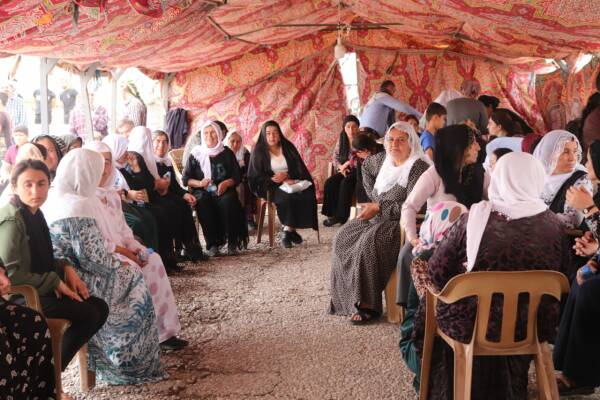 Li Wargeha Penaberan a Şehîd Rustem Cudî ya eniyên berxwedan û têkoşînê berxwedan berdewam dike. Jinên di refên pêş a berxwedanê de cih digrin dibêjin, “Serkeftin û berxwedan ya me ye.”