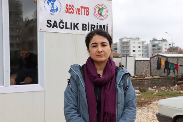 Em bi Seroka Odeya Tebîban a Amedê Elîf Turan ku ji roja ewil a erdhejê û vir ve li herêma erdhejê ye, der barê kabîneya tenduristiyê ya ji aliyê TTB û SES'ê ve hatiye avakirin û xebatên tên meşandin de axivîn. Elîf Turan, da zanîn ku piştî erdhejê wan bi organîze û rêxistinbûnê, li qadê dest bi xebatan kirine, diyar kir ku bûyera xwezayî ya ji ber xemsariyê pêk hatiye veguheriye karasetek. Elîf Turan da zanîn ku weke her carê herî zêde jin û zarok ku komên herî kêmderfet in ji vê felaketê bi bandor bûne. Elîf Turan da zanîn ku di vê pêvajoyê de mafê jin û zarokan ji bo tenduristiyê tê astengkirin û wiha got: “Ev rewş ji bo jin û zarokan pirsgirêkên cidî derdixe holê. Dema em jiyana konan, jiyana kolektîf û keda domdar li ber çavan bigirin, em dikarin bibêjin kedeke nayê ditîn jî heye. Jin jî her dem di rewşa fedakariyê de ne. Dibe ku di vê pêvajoyê de tenduristiya xwe jî feda bikin. Mixabin bîra me bi van karesatên xwezayî tije ye û tecrubeyên me jî hene. Wek TTB û SES'ê piştî erdhejê em dikaribûn xwe organîze bikin. Me rêxistinbûna xwe di qada tenduristiyê de misoger kir.”