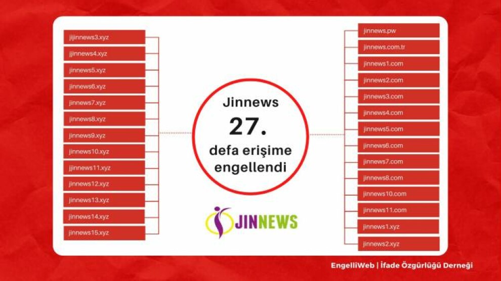 Navenda Nûçeyan - Navnîşana înternetê ya malpera Ajansa Nûçeyan a Jinan Jinnews a timî rastî astengiyan tê ya bi navê jinnews26.xyz û jinnews27.xyz hat astengkirin. Biryara astengiyê ji aliyê Desthilatiya Teknolojiyên Agahdariyê û Ragihandinê (BTK) û 4’emîn Dadgerê Cezayê Sulhê ya Amedê ve hat girtin. Navnîşana malpera ajansê ya bi navê jinnews25.xyz jî di 5’ê Gulanê de hatibû astengkirin.