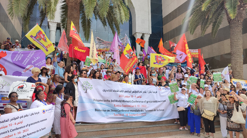 Di bin diruşmeya “Tûnis paytexta jinên cîhanê ye” ji kolana Hebîb Bûrqîba ya li paytext Tûnisê ber bi bajarê çandê ve bi beşdariya bi sedan jinên ji zêdetirî 30 welatan ji bo şermezarkirina rewşa xerab a jinên ji binkeyê ve meşek hat lidarxistin û piştî meşê konferansa jinan destpê kir.
