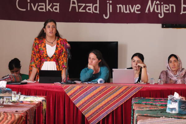 Di pêşengiya Meclisa Îştar a Wargeha Penaberan a Şehîd Rustem Cûdî, bi dirûşma “Bi paradîgmaya Rêber APO wê jinên azad, civaka azad ji nû ve nûjen bibe” komxebatek hat lidarxistin.