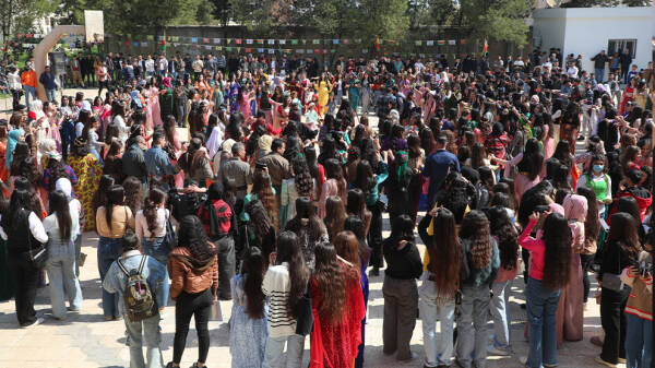Hola zanîngeha bi dirûşm û pankartên têkildarî 8’ê Adarê, hatibû xemilandin. Bi dehan xwendekarên zanîngehê, peymangeh, tevger û rêxistinên jinan di şahiyê de bi cil û bergên xwe yên gelêrî û rengîn amade bûn.