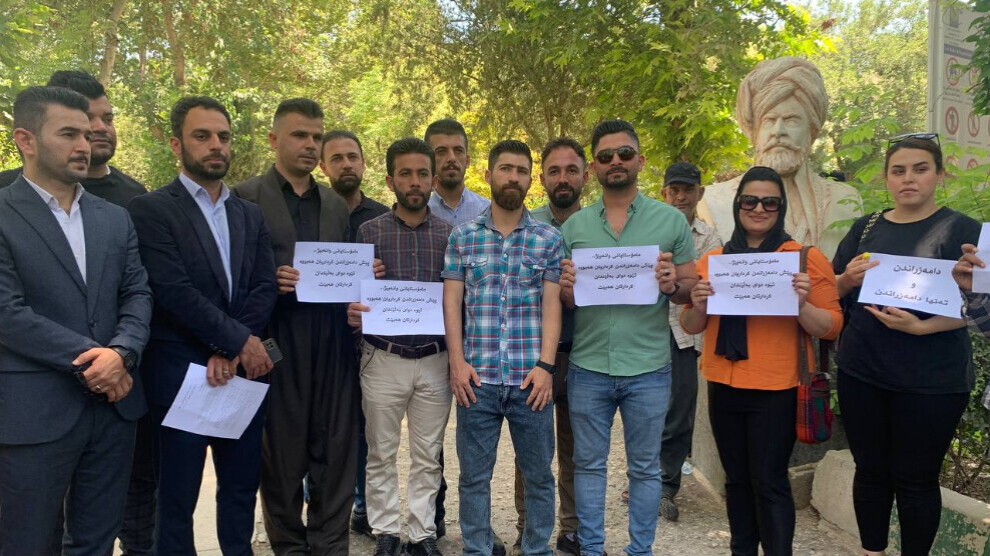 Silêmanî- Îro mamostayên bi peyman li Baxê Giştî ya bajarê Silêmaniyê daxuyaniya çapemeniyê dan û daxwaz kirin ku di sala nû ya xwendinê de daxwazên wan werin bi cihkirin.