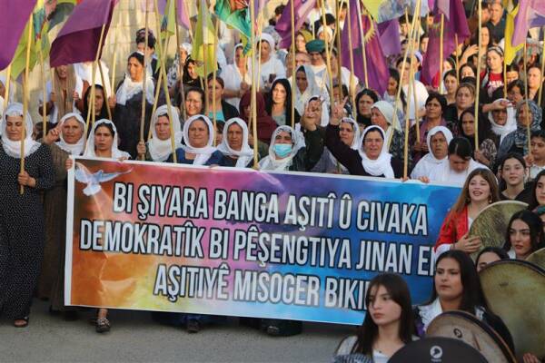 Daxuyanî bi van gotinan dawî bû: “Parastina aştiyê parastina jiyanê ye, mezinkirina aştiyê mîsogerkirina çanda demokratîke. Divê roja aştiya cîhanî de, em bang li tevahî jinên cîhanê û mirovahiyê dikin, werin em bi hev re dengê aştiyê bilind bikin, polîtîkayên şer vala derbixin û yekitiya demokratîk avabikin. Ji ber ku em dizanin aştî ji jinê despêdike, bi xwezayê re bi hêz dibe û bi azadiya gelan re mayînde dibe. Îro em weke jin, ciwan û gelê wargeha Şehîd Rustem Cudî, bang dikin ji şer re na, ji dagirkeriyê re na, ji qirkirina jin û civakê re na, dibêjin bijî xwişk û biratiya gelan, bijî civaka demokratîk.”