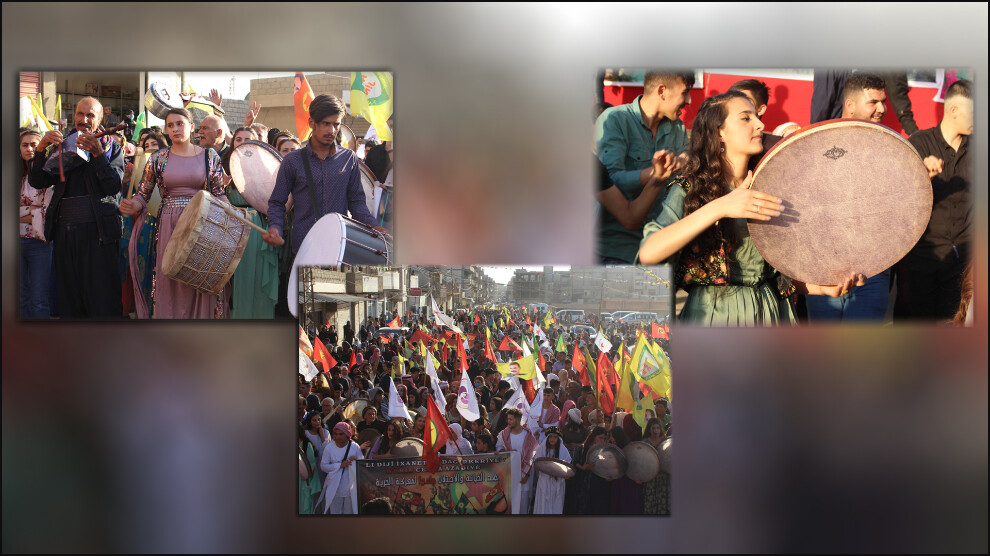 Hesekê - Bi pêşengtiya Tevgera Çand û Huner û Tevgera Ciwanên Şoreger û bi tevlîbûna hemû pêkhateyên Hesekê li dijî gef û êrîşên dewleta Tirk a dagirker bi cil û bergên filklorî meşek girseyî, hat li dar xistin. Meş ji ber çarxereya Kevokê ya taxa Miftî destpê kir û li ber Navenda Çand û Huner a bajarê Hesekê veguherî mitîngê.