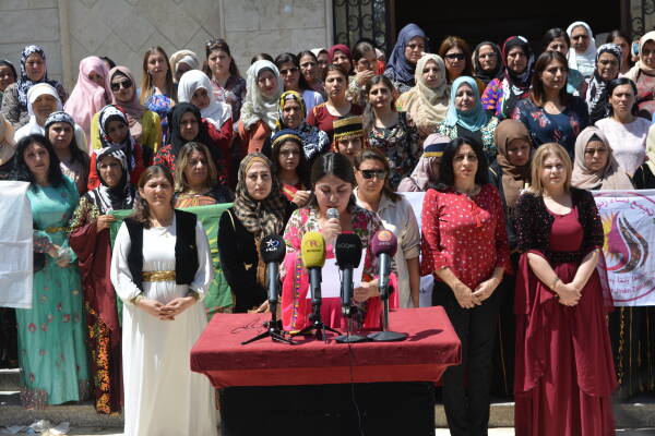 Qamişlo- Çeteyên DAIŞ’ê di 3’yê Tebaxa 2014’an de êrîşî Şengalê kir û di encamê de komkujî û qirkirin li dijî gelê resen ên Êzîdî pêk anîn. Bi hezaran jinên Êzîdî hatin revandin û di sûkan de hatin firotin. Her wiha heta niha jî çarenûsa pir jinên Êzîdî ne diyar e. Di heman wextê de di Tebaxa 2021’an de Talîbanî hat ser desthilatdariya Afganîstanê û piştî wê êrîşên pir mezin li dijî jin, nasname û hebûna jinan pêk hat ku heta roja îro dewam dike. Rêxistin û Tevgerên Jinan li Bakur û Rojhilatê Sûriyê pêngavek ji bo pişgirî û alîkariya jinên Şengal û Efganîstanê îro bi dirûşma ‘Em li dijî qirkirina jinan, jiyanê diafrînin’ dan destpêkirin.