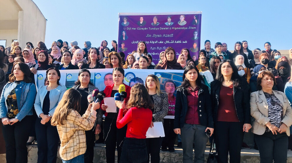 Qamişlo - Bi dirûşmeya ‘Li hemberî her cure tundiya dewlet û zihniyeta mêr; Jin, Jiyan, Azadî’ Platforma Çalakiyên hevpar ên tevger û rêxistinên jinan di Bakur û Rojhilatê Sûriyêyê ku ji 33 tevger û rêxistinên jinan pêk tê, rêzeçalakiyên xwe ya ji bo 25’ê Mijdarê Roja Cîhanî ya li Dijî Tundiya li ser Jinan eşkere kir. Daxuyanî li bajarê Qamişlo- Bakur û Rojhilatê Sûriyeyê bi beşdarbûna 100 jinan li stadyoma 12’ê Adarê hate dayin. Daxuyanî ji aliyê Endama Platforma Çalakiyên hevpar ên tevger û rêxistinên jinan Rîhan Loqo hate xwendin.