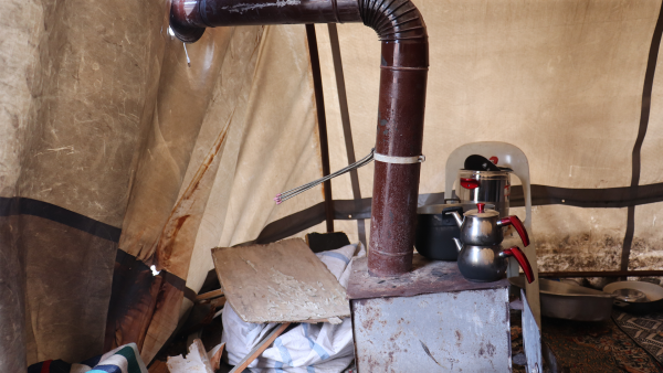 “Hûn rewşa me dibînin. Tu tiştek me tune ye, ne betaniye ne jî tiştekî ku em bişewitînin xwe pê germ bikin. Salek e li vir dijîn em. Mala min duqat bû, bi temamî rûxiya. Sobe heye, bi şev û roj divê em sobeyê vêxin lê gelek caran tiştek ku em bişewitînin tune ye. Em tenê ji neçarî li vê derê dijîn, wekî din tiştek nakin. Şukur em dijîn, kesên ku rewşa wan ji me xirabtir e hene.”