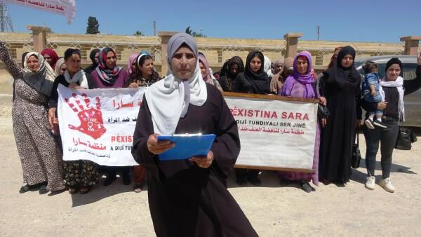 Rêxistina Sara ya li dijî tundiya li ser jinê helwesta xwe ya li dijî bûyerê anî ziman. Daxuyanî ji aliyê endama Rêxistina Sara Ehlam El-Elî ve hat xwendin.