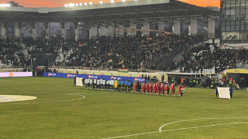 Silêmanî- 27’ê Çileyê di stadyuma futbolê ya Newroz a li bajarê Silêmanî, bi beşdariya zêdetir 10 hezar welatiyan bi bi diruşmeyên ‘Bijî Berxwedana Şervanan’, ‘Yeke Yeke Yeke gelê Kurd Yeke’, ‘Rojava ne bi tenê ye, Başur li pişte’, ‘Jin, Jiyan, Azadî’ piştevaniya xwe ya ji bo Rojavayê Kurdistanê dubare kirin. Her wiha  ala Kurdistan û wêneyên şervanan di sahê de hatin berzkirin. Ji ber hemû dahata maçê ji bo alîkariya Rojavayê Kurdistanê dê were xerckirin, gelek kes  ji bo alîkariya Rojavayê Kurdistanê beşdar bûn.