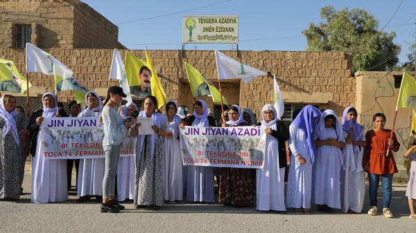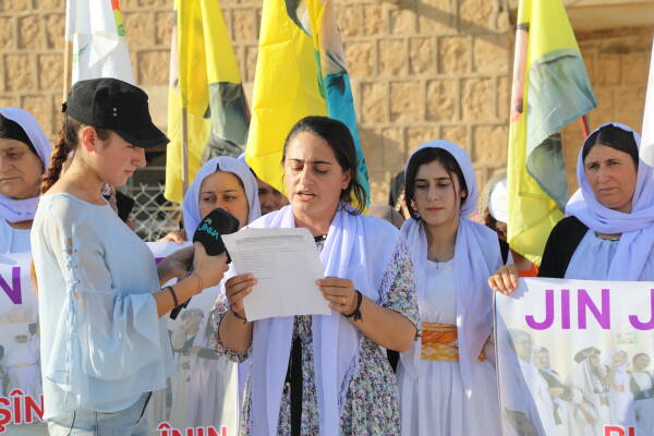 Tevgera Azadiya Jinên Êzidî TAJÊ li meclisa jin ya Navçeya Sînunê ji bo kampanya ku Koordinasyona KJK’ê daye despêkirin daxuyaniyek da.