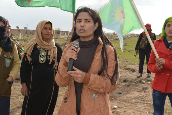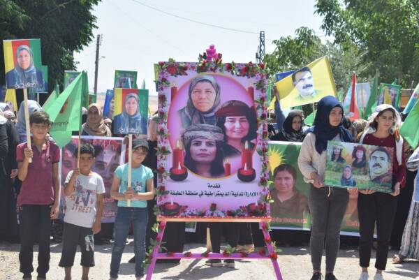 Kobanê – Jinên ku bi pêşengiya şoreşa jinê li Bakûr û Rojhilatê Sûriyeyê ya 19’ê Tirmeha 2012’an de rabûn, di hemû qadên jiyanê de rola xwe ya pêşengiyê lîstin û bûn xwedî destkeftiyên mezin a bi dirûşma ‘Jin, Jiyan, Azadî’ deng veda. Jinên şoreşê ya bi şoreşa jinê re xwe ava kirin, pergala netewa demokratîk a Rêberê Gelê Kurd Abdullah Ocalan bi jiyanî kirin û di têkoşîna azadiya jinê de mohra xwe li sedsala 21’emîn dan. Jinan çawa ku li dijî çeteyên DAIŞ’ê û ji bo binxistina wî bûn xwedî têkoşînek giranbûha, ji bo parastina pergala xwe ya netewa demokratîk a li hemberî pergala netew-dewletê ku xwe dispêre mêr-dewletê têkoşiyan û têdikoşin.