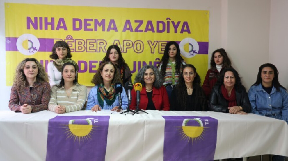 Li avahiyê pankarta “Niha dema azadiya Rêber Apo ye, niha dema jinan e” hate vekirin. Aktivîstên TJA’yê, nûnerên DEM Partî û DBP’ê, saziyên jinan û gelek jin tevli daxuyaniyê bûn. Daxuyanî ji aliyê aktivîsta TJA’yê Ayşe Aksoy ve hate xwendin.
