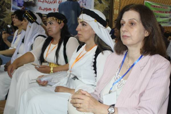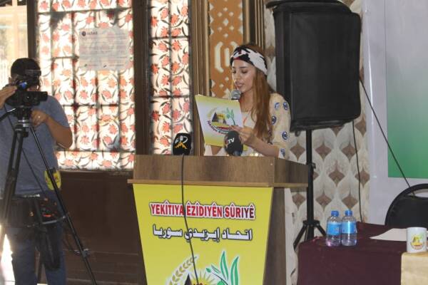 Endama Yekîtiya Jinên Êzîdî ya Efrînê Gulê Cafer derb arê rola jinên Êzîdî di parastina civaka Êzîdî de ji ajansa me re nirxandin kir û got: “Rola jinên Êzîdî bi saya fikir û felsefeya Rêber Ocalan misoger bû û xwe birêxistin kir. Beriya Şoreşa Rojava jina Êzîdî xwest xwe birêxistin bike, ji ber ku em wekî civaka Êzîdî gelek ferman bi serê ma hatine . Me dît ku di riya fikir û ramanê Rêber Ocalan de jina Êzîdî dikare xwe û civaka xwe biparêze Rêber Ocalan ji bo tevahî civakan xelasiya ji ferman û qirkirinê pênase dike. Di bin wê fikir û felsefeyê û wê baweriyê de di sala 2008’an de jina Êzîdî tekoşîna xwe li Heleb des pê kir û komeleya Êzîdiya çêkir. Ruxmî şert û mercên zehmet, di bin zexta rêjîma Baasê de me konferansa komeleya Êzîdiyan çêkir. Piştî Şoreşa Rojava me pêwistî dît ku em xweseriya xwe çêkin û me konferansa Yekîtiya Jinên Êzîdî li Efrîn da çêkirin. Tekoşîna me berdewam kir heya ku em koçber bûn û li Şehba di bin tanq û topên dewleta Tirk û çeteyên wî, her wiha dorpêçkirina rêjîma Sûriyeyê, me konferansê duyamîn çêkir. Bi encamê ked û tekoşîna jina Êzîdî îro em kongra duyemîn a Êzîdiyên Sûriyeyê li dar dixin.