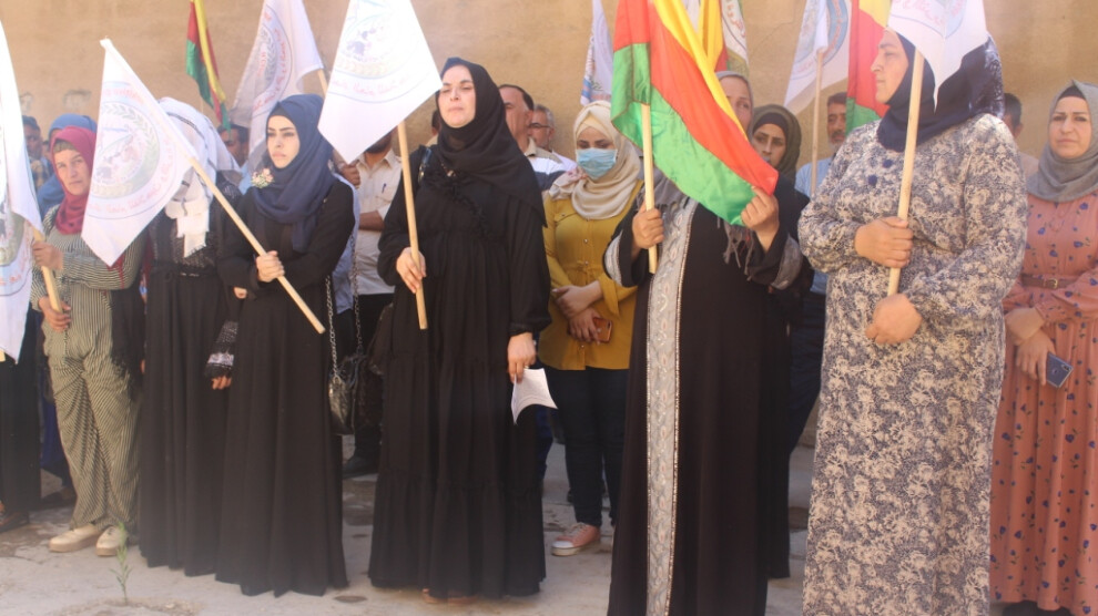 Daxuyanî li ber Navenda Tevgera Civaka Demokratîk TEV-DEM a li taxa Til Hecer a bajarê Hesekê ji aliyê Hevserokê Yekîtiya Cotkar û Sewaldarî yê kantona Hesekê Mihemed Cuma Hemîd ve hate xwendin.