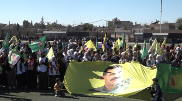 Kongra Star a bajarê Qamişlo bi dirûşma “Azadiya fîzîkî ya Rêber Apo kilîta çareserî û pêkanîna aştiyê ye” ji bo mafê hêviyê û azadiya fîzîkî ya Rêberê Gelê Kurd Abdullah Ocalan daketin kolanan.