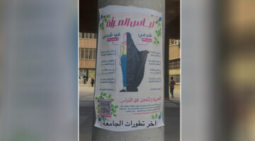 Li Zanîngeha Helebê afişên ku "cil û bergên jinan ên şer'î û neşer'î" nîşan didin, ji aliyê rêxistinên jinan ve rastî bertekê hatin. Endama Koordînasyona Kongra Star a Helebê Rîhan Elû got, "Ev êrîşa li ser azadiya jinê ye."