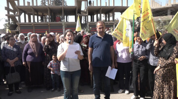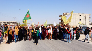 Jinên ji bajarê Kobanê, berxwedana gelê taxên Şêx Meqsûd û Eşrefiyê silav kirin û hişyariya “Eşrefiye û Şêx Meqsûd xeta me ya sor e” kirin.