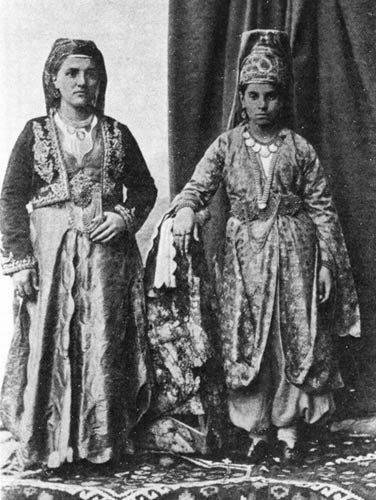 کە شەڕواڵەکانیان لە دەرلنگەکانیانەوە تا ئەژنۆ تەسکە، دواتر فراوان دەبێت، هەروەها کراسێکی قۆڵدار لەبەردەکەن، هێلەکێک لەبەر دەکەن، پشتێنێک دەبەستن، بەگشتیش جەمانەی سور بەکاردەهێنن.
