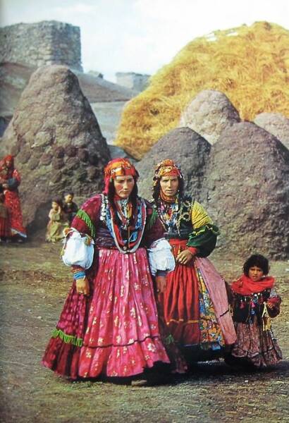 ژنانیشیان بەشێکی زۆری قوماشی جلوبەرگەکانیان ئەستوورە، هەروەها پێش ماڵ بەکاردەهێنن، کە بە تایبەت لە کاتی چاندنی تۆو و کشتوکاڵدا بەکاردێت، سەروبەندەکانیشیان ڕەنگاوڕەنگە و بە لیرەی زیو و زێڕ ڕازێندراوەتەوە، هەندێکیشیان کراسەکانیان کورتە و تا خوار ئەژنۆییانە.