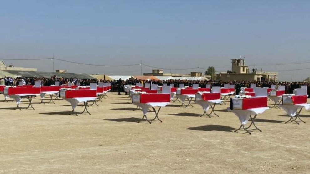 لە مەراسیمێکدا ڕوفاتی ٤١ ئێزدی لە بەغداوە هێنراوە بۆ شەنگال بە خاک سپێرداران، کە زۆرینەیان ژنن و خەڵکی گوندی کۆچۆن.