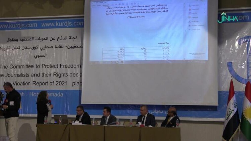 لە هەمان کاتدا، ئاماری پێشێلکارییەکان بۆ ساڵی ٢٠٢١ خوێندرایەوە، ١٨٧ پێشێلکاری بەرامبەر دەزگا و ڕۆژنامەنووسان تۆمارکراوە، دەستگیرکردن ٣٥، ڕێگەنەدان بە ڕووماڵ ٦١، هێرش و سوکایەتی ٧٩، لێدان ٥، هەڕەشە چوار، داخستنی نوسینگە و کەناڵ سێ، کۆی گشتی ٧٩ حاڵەت بەرامبەر ١٨٧ دەزگا و ڕۆژنامەنووسان ئەنجامدراوە، بەڵام بە پێی ئەوەی تۆمارکراوە تەنها یەک ژنی ڕۆژنامەنووس توندوتیژی بەرامبەر ئەنجامدراوە، کە ڕۆژنامەنووسان ئەم ئامارە بە ڕاست نازانن.
