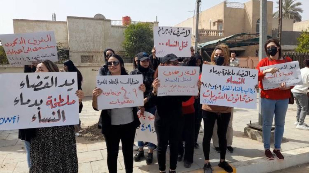 ژنانی بەغدا بە دروشمی "هیچ شەرەفێک لە کۆمەڵکوژیی ژناندا نییە" بۆ گۆڕانکاری و هەموارکردنەوەی بڕگەکانی یاسای سزادانی کۆمەڵکوژیی ژنان، چالاکی نارەزایەتییان ڕێکخست.