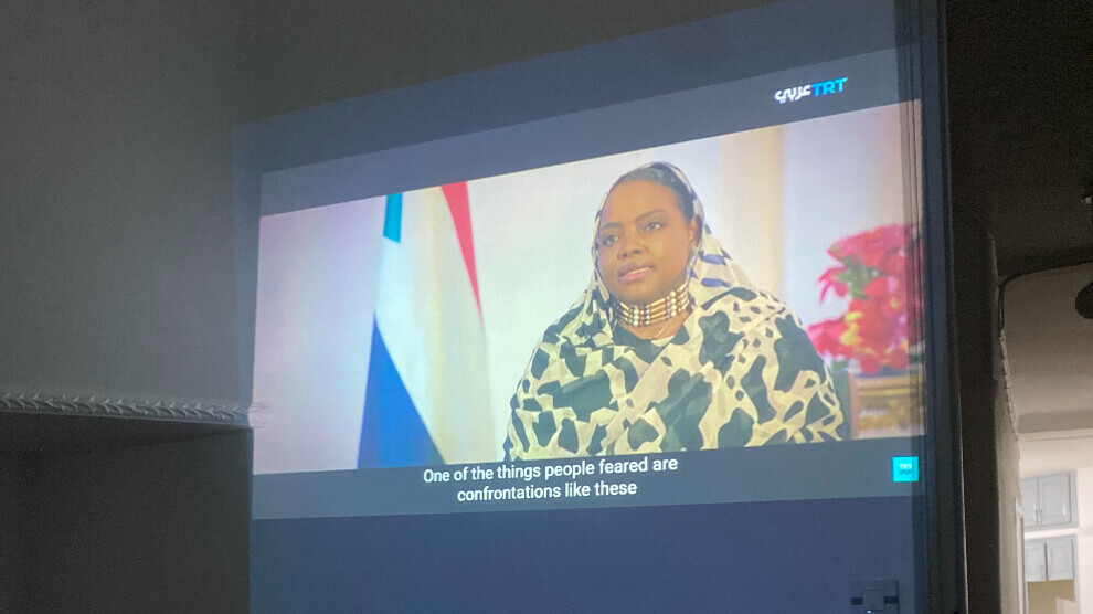سەمیرە دەهری، ڕۆژنامەنووس و چالاکوانی ژنان و ئەندامی ڕێکخراوەکە ڕایگەیاند، کە دانیشتنەکە نمایشی فیلمی دیکۆمێنتاریی "ضحايا الأرض" "زیانبەرکەوتووانی خاک"ی لەخۆگرتبوو، دواتر گفتوگۆیەک و پێشکەشکردنی ڕۆژنامەنووس و چالاکوانی سودانی وینی عومەر، وتی: فیلمەکە دیاردەی دەستدرێژی و هەراسانکردنی بەڵگەدار کردووە کە کاریگەری لەسەر ژنان و مندالانی کچ هەبووە و بەردەوامیشی هەیە، لەنێویاندا منداڵانی خوار تەمەنی یاسایی و هەروەها پیاوانی سودان، لە چوارچێوەی شەڕی چەکداری بەردەوام لە وڵاتەکەدا، ئامانج لە ڕێکخستنی ئەم دانیشتنە ڕۆشنایی خستنە سەر ئەو پێشێلکارییە ڕاستیانەیر کە لە کاتی شەڕدا ڕوویانداوە، پێویستی بە هەڵوێستێکی ڕاستی هاودەنگی کۆمەڵگەی نێودەوڵەتی و ڕێکخراوەکانی مافی مرۆڤ هەیە.