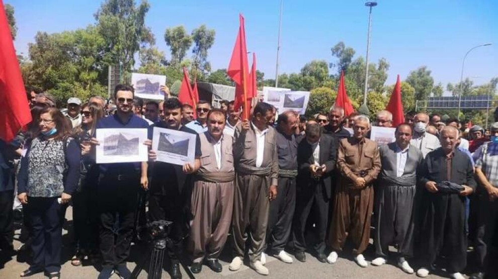 دژی هێرشە داگیرکارییەکانی دەوڵەتی تورکیا و لێبڕینی موچە حزبی شیوعی کوردستان لەبەردەم بینای پەرلەمانی هەرێمی کوردستان لە هەولێر گربوونەوە.