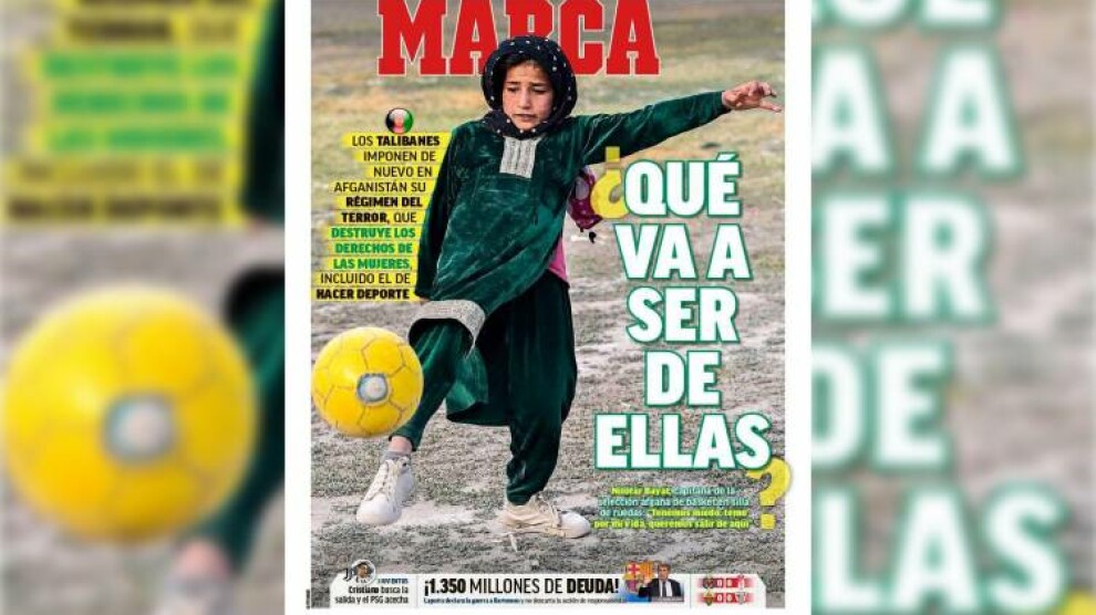 ڕۆژنامەی مارکای ئیسپانی وێنەی منداڵێکی ئەفغانی بە تۆپی پێوە بڵاوکردەوە و مانشێتێکی نووسیوە بە ناوی "چی بەسەریان دێت؟"