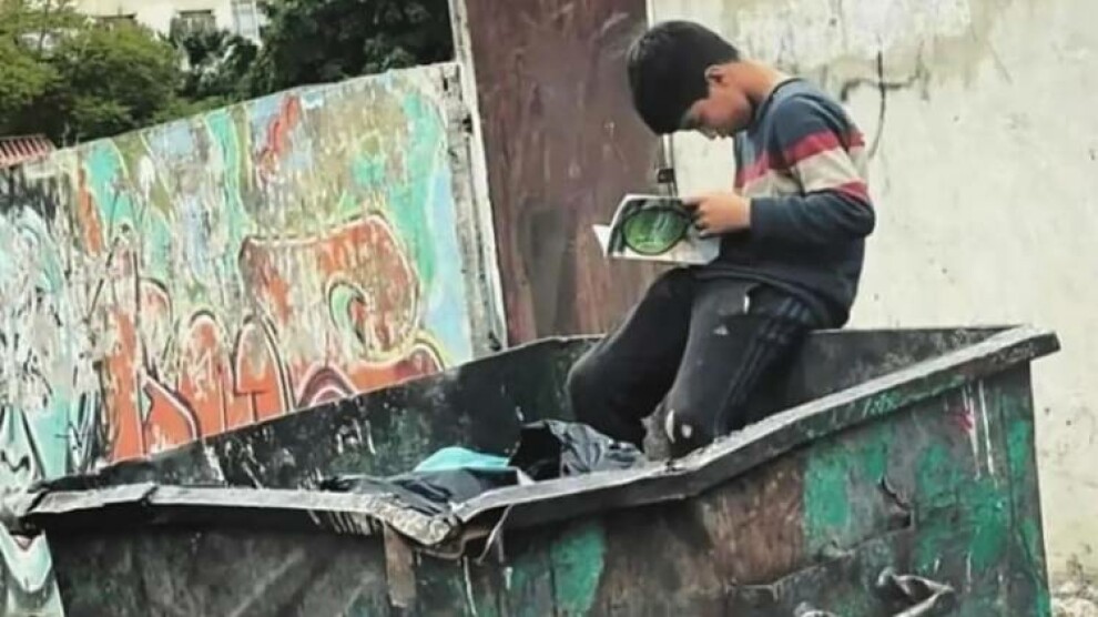 منداڵکی ئاوارەی سوریا کتێبێک لەناو زبڵ هەڵدەگرێتەوە و دەیخوێنێتەوە
