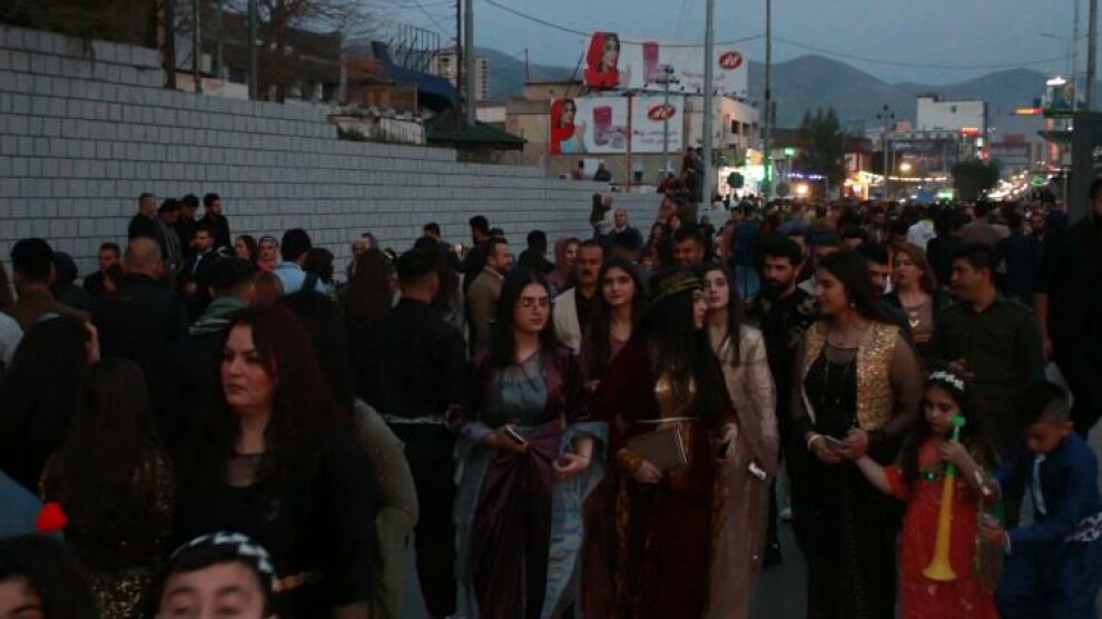 لە ئاهەنگەکەدا هەزاران کەس بە جلوبەرگی کوردی ڕەنگاوڕەنگەوە، هاتبوونە شەقامەکە، بە گۆرانی و میوزیکی کوردی شاد دڵخۆشی خۆیان دەدەبڕی و دەست لەناو دەست هەڵدەپەڕین.