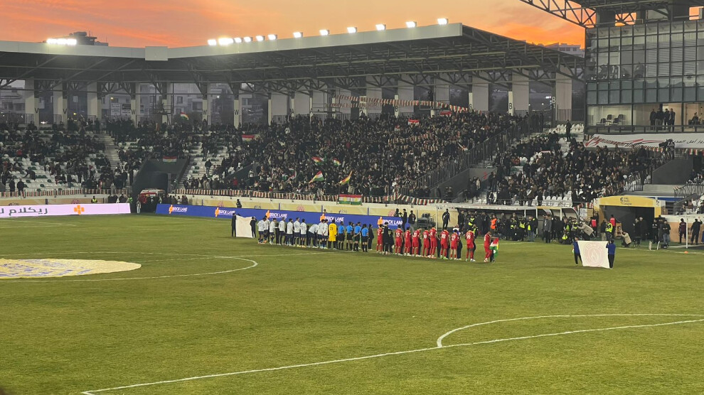 ٢٧ی کانوونی دووەم، لە یاریگای یانەی نەورۆز، لە شاری سلێمانی، بە بەشداری زیاتر لە ۱٠ هەزار هاوڵاتی و بە وتنەوەی دروشمەکانی"بژی بەرخۆدانی شەڕڤانان'' و ''یەکە یەکە گەلی کورد یەکە''، ''ڕۆژئاوا تەنها نییە، باشوور پشتیوانییە''، ''ژن، ژیان، ئازادی''، پشتیوانییەکان بۆ ڕۆژئاوای کوردستان دووپات کرانەوە، هەروەها بەشداربووان ئاڵای کوردستان و وێنەی شەڕڤانانیان هەڵگرتبوو و لەناو یاریگاکەدا بەرزیان کردەوە، هەروەها لەبەرئەوەی ڕاگەیاندرابوو کە تەواوی داهاتی یارییەکە وەک هاوکاری پێشکەشی کۆچبەرانی ڕۆژئاوای کوردستان دەکرێت، کە بە هۆی هێرشی چەتەکانی جۆلانی و دەوڵەتی تورکەوە زێدی خۆیانیان بەجێهێشتووە،  خۆشبەختانە زۆرێک لە هاوڵاتیان بلیتەکانیان کڕی بوو، تابتوانن هاوکاری بۆ ڕۆژئاوای کوردستان کۆبکەنەوە.