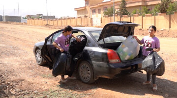 لە یەکێک لە گەڕەکەکانی شاری هەڵەبجە بەردەوام دوو کچی دووانەی لێکچوو بە بەری بەیان کۆڵان و ماڵ، پارک و شوێنە گشتییەکان لە ماددە پلاستیکیەکان پاک دەکەنەوە.