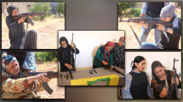 ژنانی عەفرین و شەهبا بە ئامانجی بەرگریکردن لە خۆیان بەرامبەر هێرشە داگیرکارییەکانی دەوڵەتی تورک و هاوپەیمانەکانی، پێکەوە فێری بەکارهێنانی چەک دەبن.