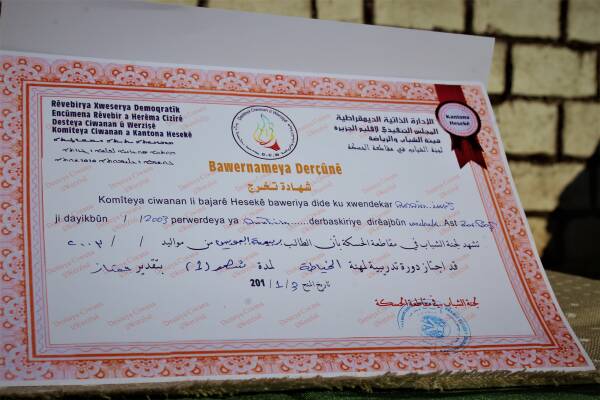 Hesekê - Türk devletinin, Til Temir ve kırsal bölgelerine yönelik saldırılarına rağmen genç kadınların örgütlülüğü de sürüyor. Ekonomiyi geliştirme amacıyla Genç Kadınlar Hareketi, Kuzey ve Doğu Suriye’nin Hesekê kentindeki Til Temir ilçesindeki Ên El-Ebid köy komününde 11 Haziran 2022’de Medya Savunma Alanları’ yaşamını yitiren YJA-Star gerillası Rîhan Xelef (Berfîn Botan) adına dikiş çalışması başlattı. Eğitimleri sonlanan katılımcılara sertifikaları dağıtıldı.