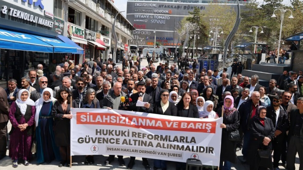 İHD birçok kentte, “Silahsızlanma ve barış hukuki reformlarla güvence altına alınmalıdır” başlığıyla basın açıklaması gerçekleştirdi. İstanbul, Wan, Şirnex, Amed, İzmir, Mersin ve Ankara’da yapılan ortak açıklamada şu ifadeler yer aldı: