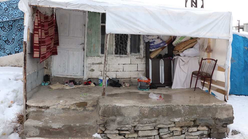 Konteynırların zeminini yağışlı günlerde su basıyor. Islak zemini gösteren bir kadın, “Bu gördüğün buz değil, bir halı” diyerek, her kış mevsiminde benzer sorunların yaşandığını anlatıyor.