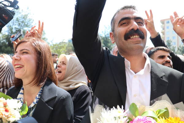 Amed- Halkların Eşitlik ve Demokrasi Partisi (DEM Parti) 31 Mart Yerel Seçimlerinde yüzde 64,09 oyla Amed Büyükşehir Belediyesi’ni kazandı. Dün mazbatalarını alan Amed Büyükşehir Belediyesi Eş Başkanları Serra Bucak ve Doğan Hatun, binlerce kişiyle birlikte 8 yıldır kayyumla yönetilen belediye hizmet binasına geldi. Belediye binası önünde binlerce kişi davul zurna eşliğinde halaylar çekti.