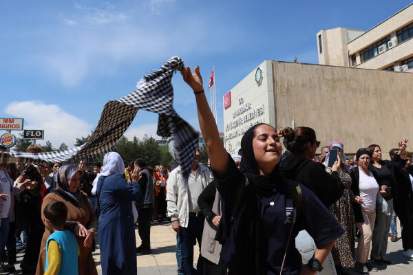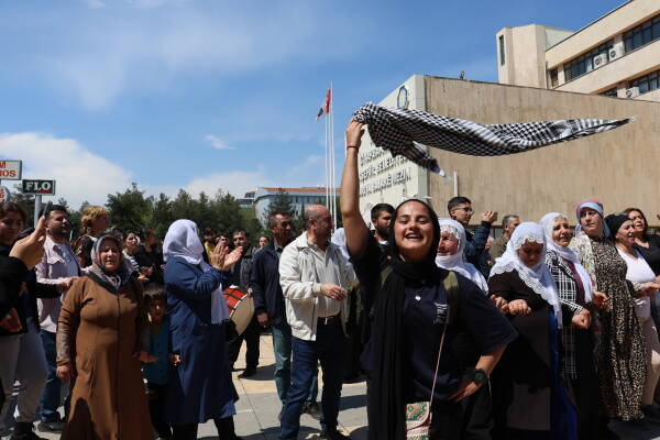 Kayyım atanan Amed Büyükşehir Belediyesi’ne, DEM Parti’nin yeniden kazanmasıyla birlikte 8 yıl sonra gelen kadınlar, “Artık kayyım atanmasına izin vermeyeceğiz. Kürt halkının, kadınların ve gençlerin iradesini kıramayacaklar” mesajını verdi.