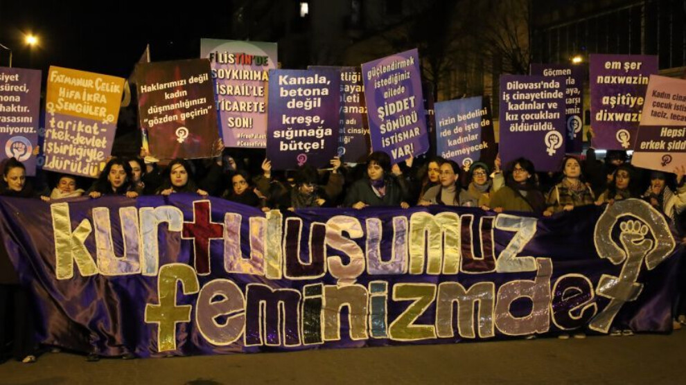 İstanbul’da kadınlar, Feminist Gece Yürüyüşü’nde savaş politikalarına, erkek egemenliğine ve kadınlara yönelik şiddete karşı sokaklara çıktı.