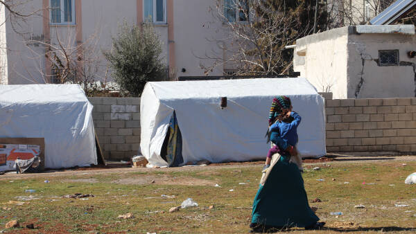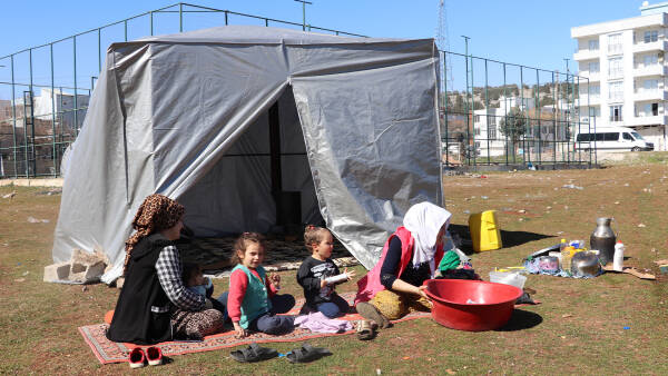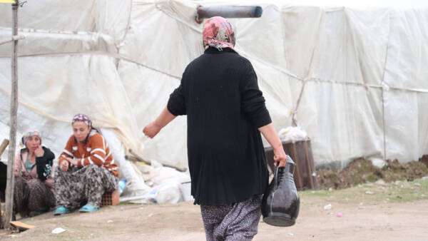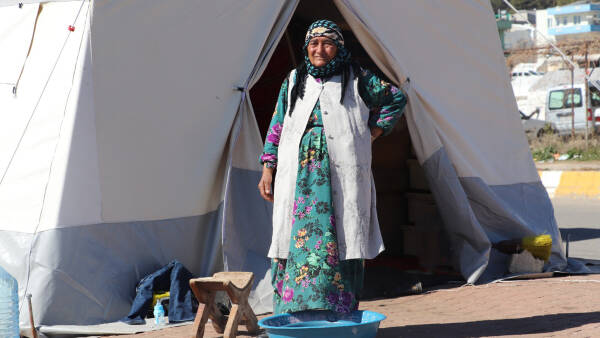 “Bir aydır çadırdayız ne su ne de elektrik var. Akşamları mum ışığı önünde oturuyoruz. Su da yok. Buradan başka bir eve gidiyoruz onlar sondajla su çıkarıyor biz de onlardan su alıyoruz. Hiçbir şey yok, gelenlerde dışarıdan gelen yardımlar. Duş almak için az hasarlı bir ev var mahallede oraya gidip duş alıp geliyoruz. Tuvalet yok, tuvalet için tarlaya gidiyoruz.”