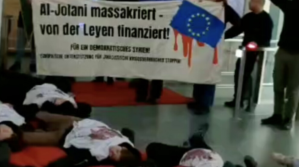 Enternasyonalist gençler, Berlin’deki ZDF bürosunda yaptıkları eylemle Avrupa’nın Rojava’daki katliamlara sessiz kaldığını ve Colani’ye verilen mali desteğin savaş suçlarını büyüttüğünü vurguladı.