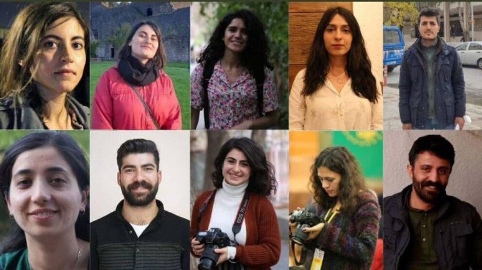 İstanbul’da gözaltına alınan Mezopotamya Ajansı Yazı İşleri Müdürü Diren Yurtsever ve Van’dan gözaltına alınan MA muhabiri Hakan Yalçın, dün akşam Ankara’ya getirildi. Diyarbakır’da gözaltına alınan JİNNEWS muhabiri Habibe Eren, MA muhabiri Selman Güzelyüz, Mardin’de gözaltına alınan JİNNEWS muhabiri Öznur Değer ve Urfa’da gözaltına alınan MA muhabirleri Ceylan Şahinli ile Emrullah Acar da Ankara’ya getirildi.