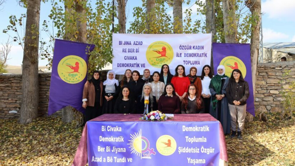 Haber Merkezi- Demokratik Bölgeler Partisi (DBP) Kadın Meclisi, DBP Eş Genel Başkanı Çiğdem Kılıçgün Uçar’ın katılımıyla “Özgür Kadınla Demokratik Topluma” şiarıyla başlattıkları “Kadın Kurtuluş İdeolojisi” atölyelerinin sonuç raporunu düzenlediği basın açıklaması ile duyurdu. Erzirom'un (Erzurum) Qereçoban (Karaçoban) ilçesine bağlı Kirimkeya (Kırımkaya) Mahallesi’nde yapılan açıklamada, raporu DBP Parti Meclisi (PM) üyesi Gülşen Demir okudu.