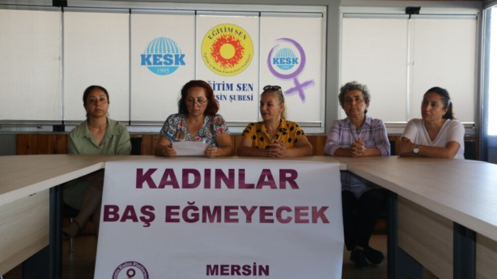 Haber Merkezi - Mersin Kadın Platformu, Eğitim ve Bilim Emekçileri Sendikası (Eğitim Sen) Şube binasında HDP Milletvekili Semra Güzel’in tutuklanmasına ilişkin basın toplantısı düzenledi. Açıklamada, “Kadınlar baş eğmeyecek” pankartı açıldı.